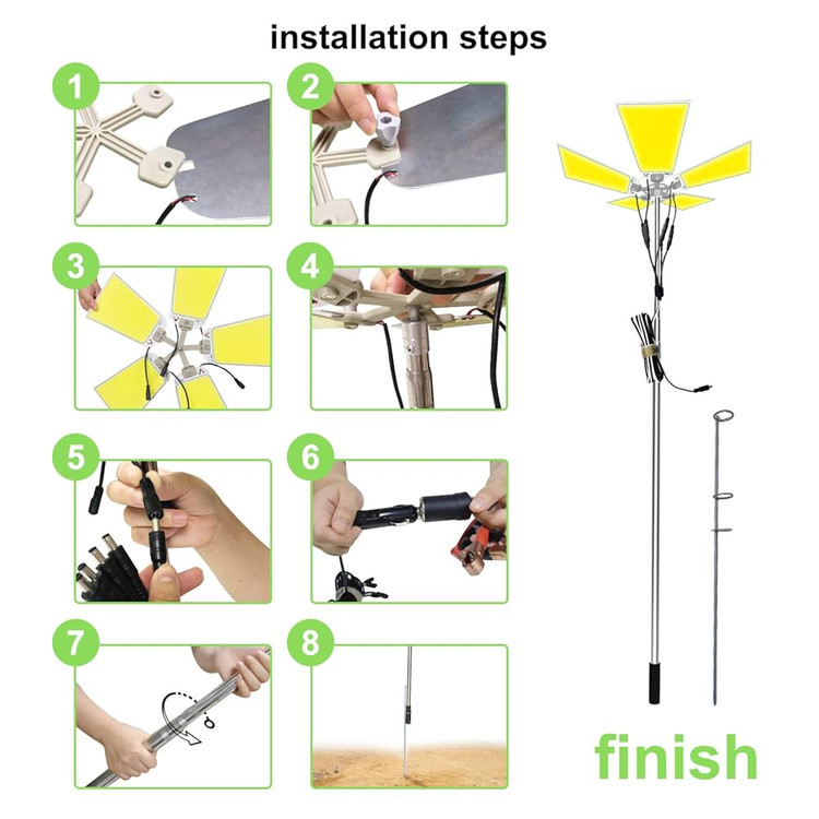 این چراغ لنسری کمپ، با داشتن 5 پنل به سایز 20×14 سانتیمتر دارای ولتاژ ورودی 12 ولت برق مستقیم (DC) میباشد و توان مصرفی آن تقریبا 70 وات ارزیابی شده است.